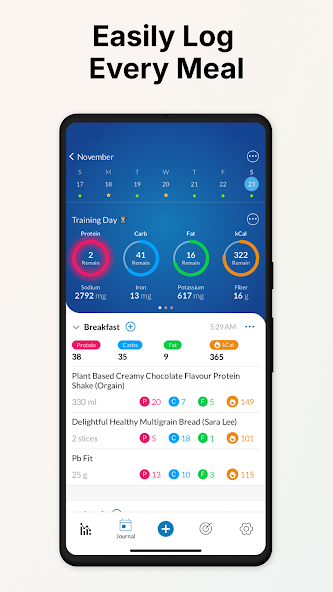 • Lacak asupan protein Anda secara akurat dengan pelacak makro kami yang juga berfungsi sebagai pelacak protein khusus.